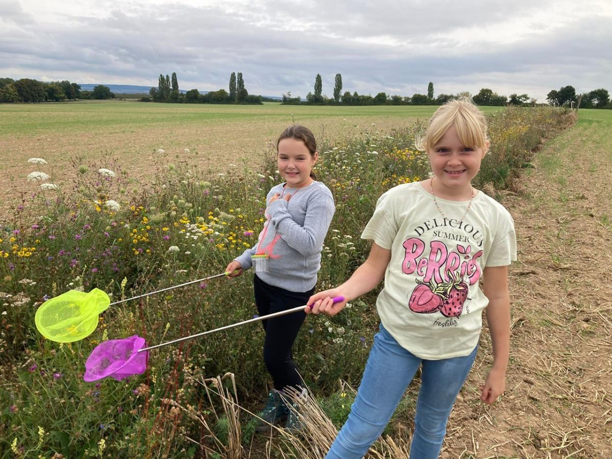 Praxisnaher Unterricht auf einem frisch angelegten Feldrain – Evangelische Grundschule Mühlhausen übernimmt Patenschaft für blühenden Feldrain mit Schmetterlingen, Wildbienen & Co.
